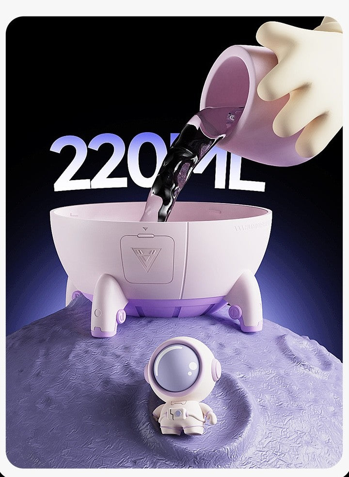 Com formato de cápsula espacial e boneco astronauta, ele funciona como ornamento decorativo e umidificador de ar, mantendo o clima sempre confortável e cheio de charme.
